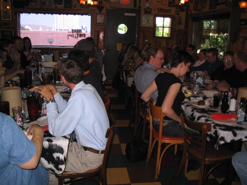 The groom's family and Jay & Jenny Baker gather around a table at the rehearsal dinner. | Shower gifts