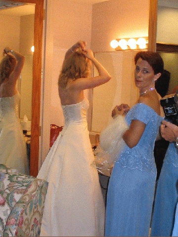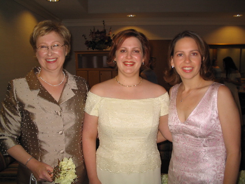 Andrew's Mom and sisters pause for a quick pic before the ceremony. |