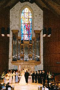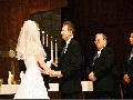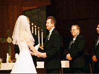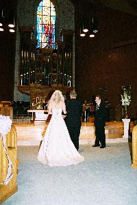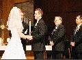 With 16 great friends and family memebers in attendance the front of the church is quite full. | Giving away the Bride