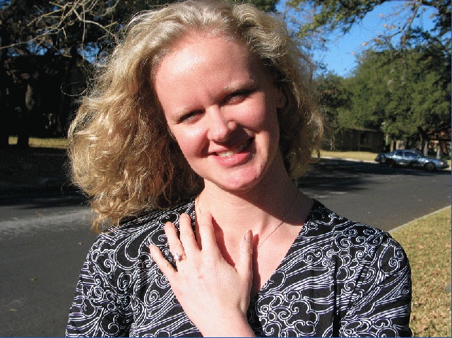 Erica shows off her new ring while smiling at the camera. | Erica's Decorated Hand
